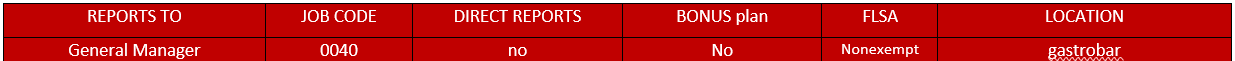 When working at a gastrobar location, Team Member must be able to perform the duties of that location. These requirements may include: Lifting up to 10 (ten) pounds constantly and up to 50 (fifty) pounds as required. Lifting from floor to shoulder constantly and overhead infrequently. Twisting and reaching frequently. Grasping objects to move or manipulate constantly. Working in alternatively hot or cold environments for extended periods of time. May inadvertently bump into team members in a relatively small work area. Will stand and walk for extended periods of time. FREQUENT hand washing and sanitation is required. Ability to use knives, slicing equipment, and other food preparation equipment. Team Member must be able to communicate with Guests and other Team Members and manipulate handheld and desktop devices.